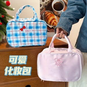 韩系高颜值三层化妆包少女心百搭手提洗漱包大容量便携旅行收纳包