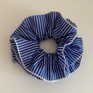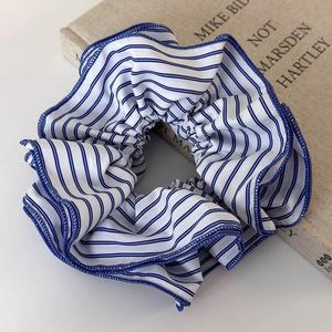 慵懒感低丸子头~蓝色条纹大肠发圈女高级感韩系超大双层头绳头花