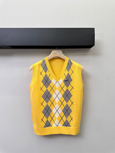 25早秋新款南油高定Miu简约休闲百搭刺绣圆领菱格针织开衫