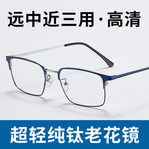 钛架老花眼防蓝光远近两用渐进多焦点纯钛超轻老花眼镜工厂批发