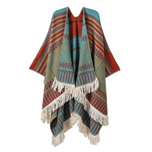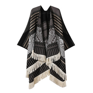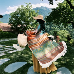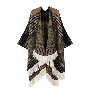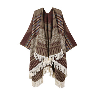 新款民族风旅行针织披肩川西新疆西藏旅游开叉披风女外搭保暖斗篷