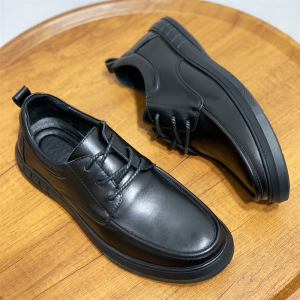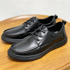 头层牛皮真皮男士休闲皮鞋新款透气系带方头商务休闲外贸男鞋软底