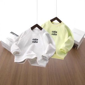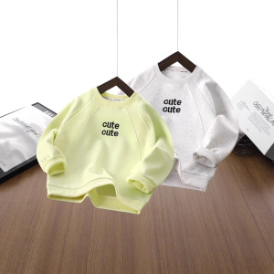 2025男童卫衣秋装儿童上衣圆领休闲服女童洋气刺绣运动服一件代发