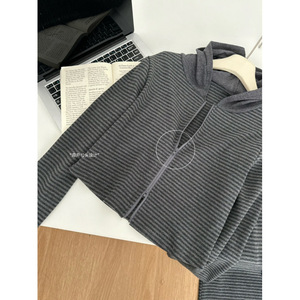 慵懒周末outfit 条纹修身正肩显瘦连帽卫衣套装女秋季