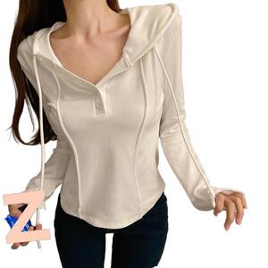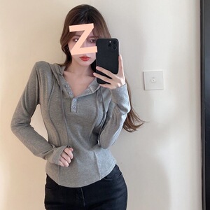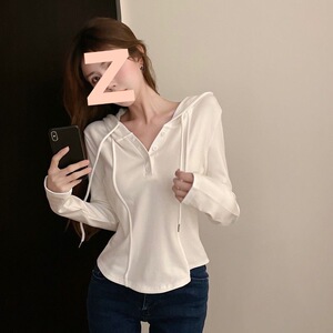 2025早秋新款修身连帽卫衣女韩版纯欲风百搭小众纯色显瘦短款上衣