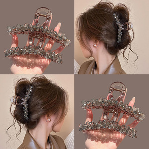 白鹿同款发夹高级感水晶抓夹精致时尚发卡女后脑勺盘发鲨鱼夹头饰