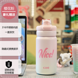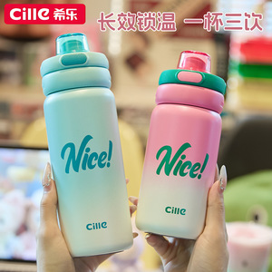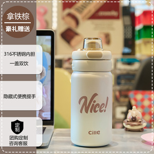 希乐保温杯女316不锈钢吸管杯大容量男学生儿童上学专用便携水壶