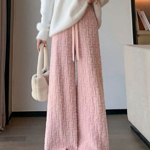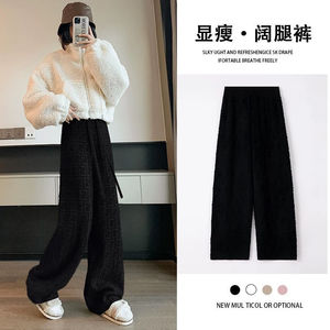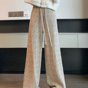 加绒糯米裤水貂绒字母针织阔腿裤女秋冬高腰垂感拖地休闲直筒棉裤