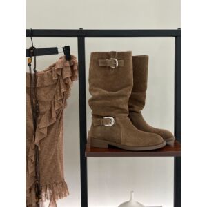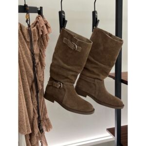 头层牛皮2025秋冬季新款复古时尚百搭内增高堆堆靴西部牛仔长靴女