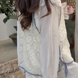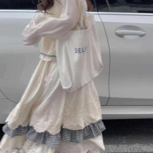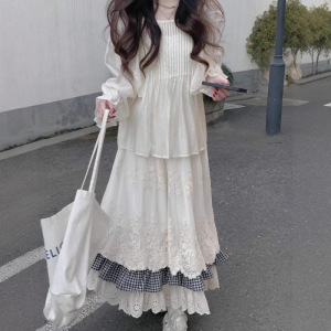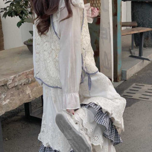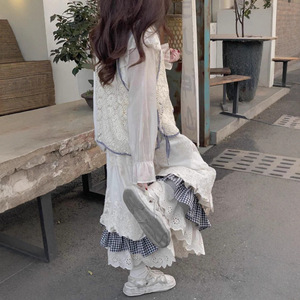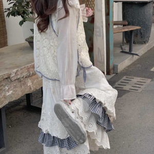2025春夏季新款森系拼接半身裙女设计感复古衬衫休闲马甲三件套