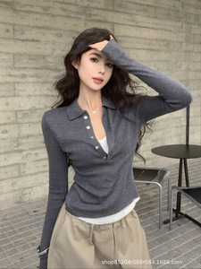 法式假两件连帽打底衫长袖t恤女士春秋冬新款小个子内搭短款上衣