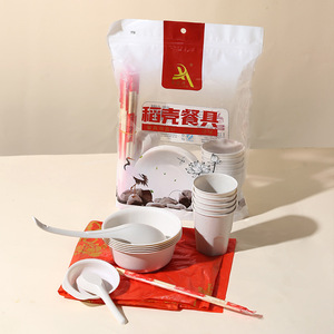 稻壳一次性餐具碗筷套装勺杯子饭碗碟食品级10人份户外野餐九件套