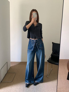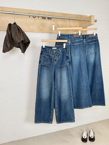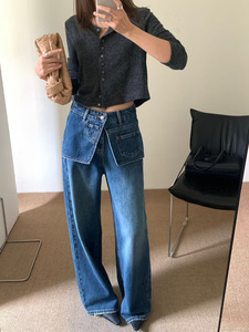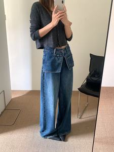 秋上新【TOP 欧制】设计感双腰头两件式阔腿裤复古美式牛仔裤9086
