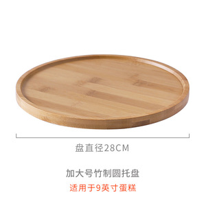 加大号竹圆托盘带玻璃 (盘直径28厘米)✓