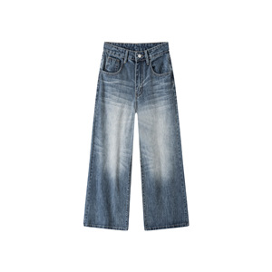 2025调性牛仔 复古水洗做旧牛仔裤垂感阔腿直筒显瘦长裤女百搭时