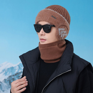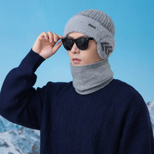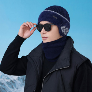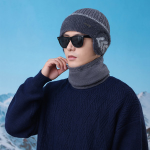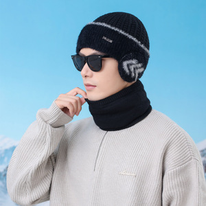 男士冬天防寒围脖套毛线帽冬天保暖帽子加绒加厚青年骑车针织帽子