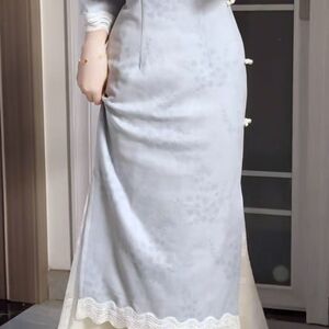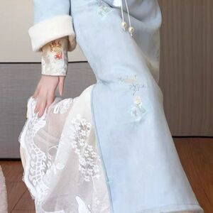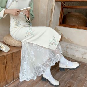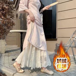 旗袍内搭衬裙百褶半身裙秋冬叠穿复古加绒打底蕾丝纯色大摆半身裙