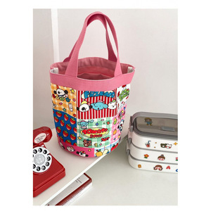 可爱插画水桶手提韩风少女心妈咪便当袋上班小拎包童趣涂鸦帆布包
