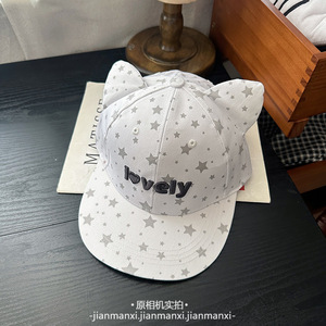 韩版可爱猫耳朵五角星平檐棒球帽女百搭鸭舌帽休闲运动遮阳鸭舌帽