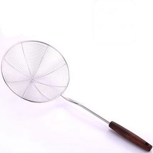 批发304古木柄不锈钢漏勺大号火锅捞勺家用厨房过滤网油炸捞面饺