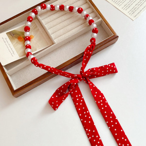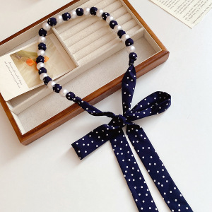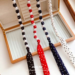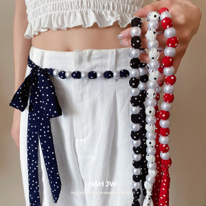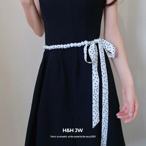 复古风波点长丝巾珍珠腰链小众设计感腰带时尚轻奢饰品女高级感