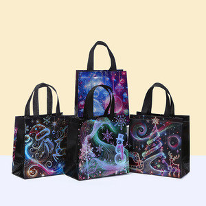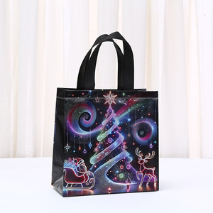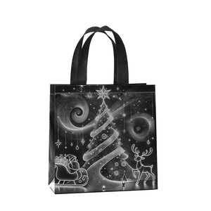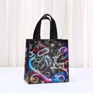 炫彩无纺布袋个性黑色圣诞节主题系列礼品袋可折叠立体感收纳袋
