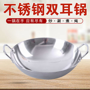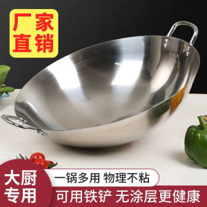304无磁不锈钢双耳锅不生锈不粘锅加厚厨师锅食堂饭店家用炒菜锅
