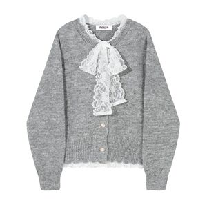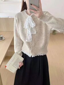2025早秋新款针织开衫女蕾丝花边毛衣外套上衣长袖打底衫外搭小衫