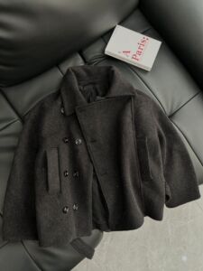 LEM~E 25秋冬深卡其色短款不对称浴袍式束腰赫本风双排扣大衣外套