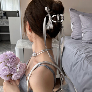 银色蝴蝶结飘带抓夹~约11cm飘带约25cm