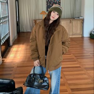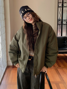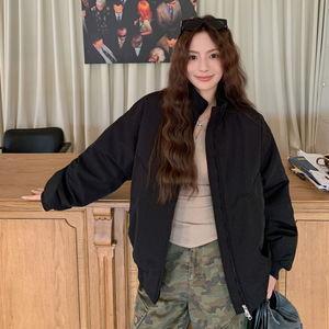 韩系短款工装夹克女短款2025秋冬立领冲锋棉衣美式感棉衣潮流外套