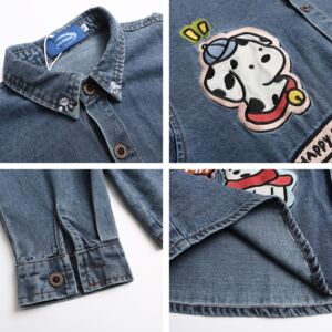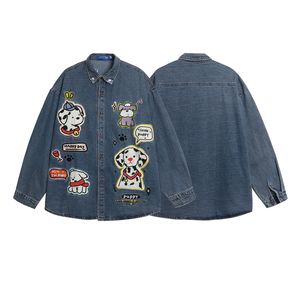 美式复古重工水洗小狗贴布绣牛仔长袖衬衫男女秋冬宽松情侣外套