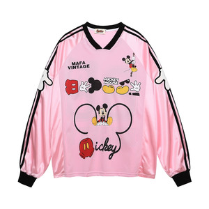 美式复古卡通刺绣v领卫衣男女2025秋冬慵懒松弛感运动透气球衣