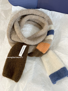 复古百搭针织细窄围巾女时髦春秋韩系柔软毛线围脖护颈潮