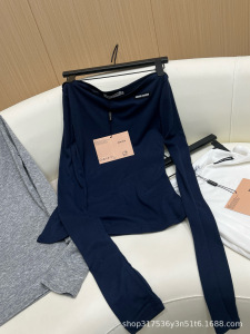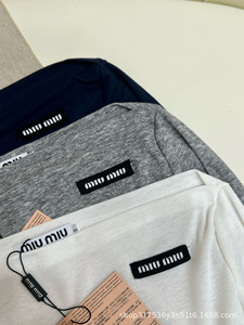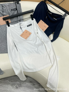 南油女装Miu家25年新品一字领字母贴布薄款打底修身百搭长袖T恤