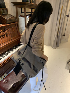 乔戈百搭单肩大包简约帆布大容量水桶包小众设计复古托特包女士包