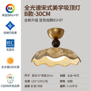 中古风卧室吸顶灯法式复古手工布艺花纹民宿设计师卧室书房吸顶灯