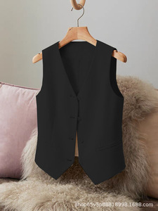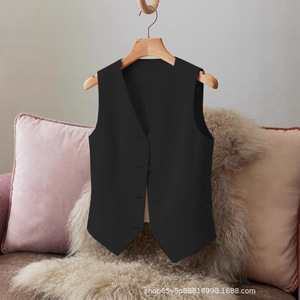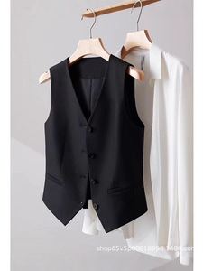新款西装马甲女小背心春秋新款修身外搭女款黑色短款女马夹小个子