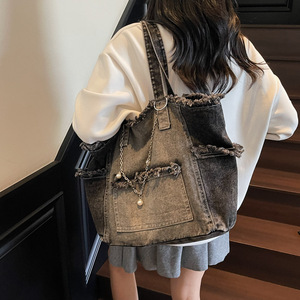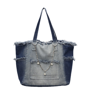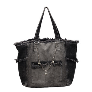 外贸牛仔布大容量通勤大手提包高级感休闲松弛引闪百搭单肩托特包