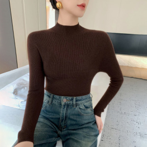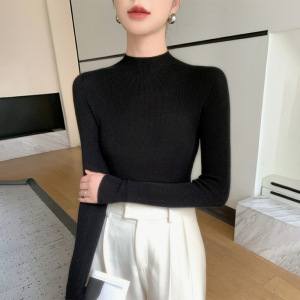 2025秋冬新款一线成衣精纺羊毛女半高领修身显瘦羊绒内搭打底衫