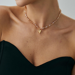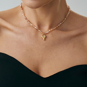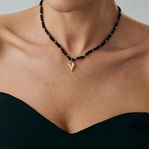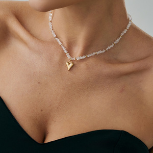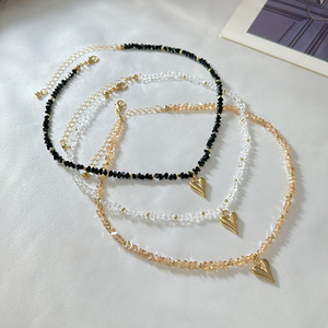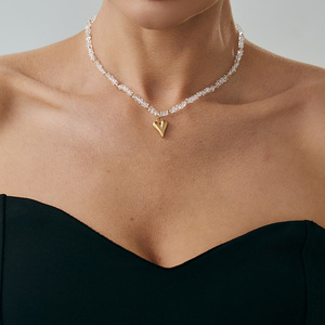 欧美跨境饰品 简约时尚水晶串珠锁骨颈链 小众金属桃心吊坠项链女
