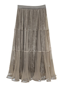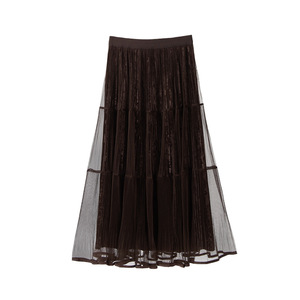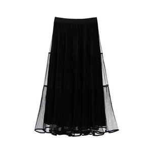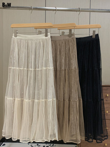 韩系温柔气质丝绒内里压褶高密网纱高腰半身裙女2025秋冬新款长裙