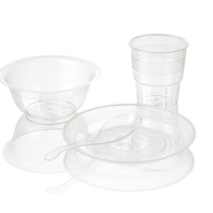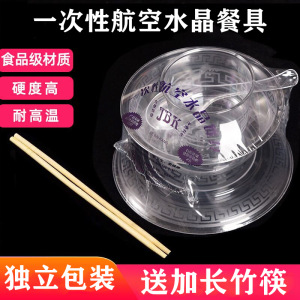 一次性餐具四件套航空水晶碗筷套装饭店酒席食品级降解硬塑耐高温