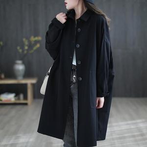 大码女装韩版2025春秋款女装新款宽松中长款长袖上衣女风衣外套女
