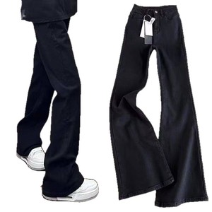 黑色柳叶弯刀微喇牛仔裤男潮美式高街vibe修身显瘦窄版微喇裤子