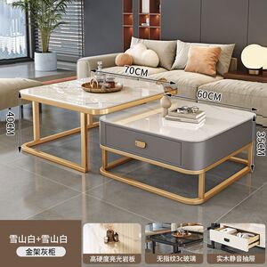 60+70cm子母茶几【9mm加厚亮光岩板】-出口品质