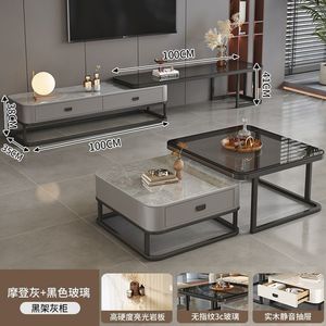 金架灰抽丨摩登灰茶几+茶玻电视柜-出口品质