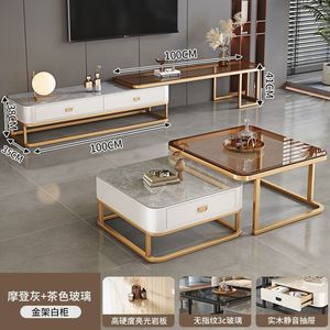 金架白抽丨摩登灰茶几+茶玻电视柜-出口品质