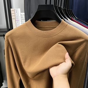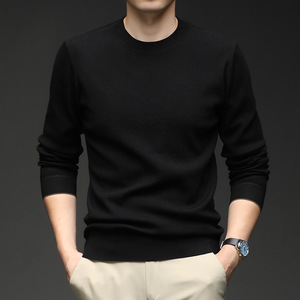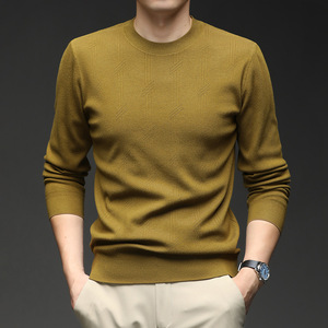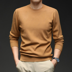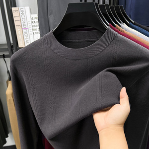 2025秋冬新款男士纯色圆领提花毛衣男休闲时尚简约针织衫打底上衣