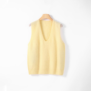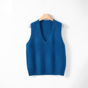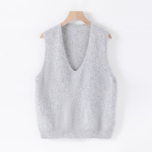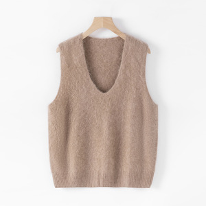 秋冬新无缝拉毛羊绒毛衣圆领针织马甲保暖打底无袖背心百搭打底衫